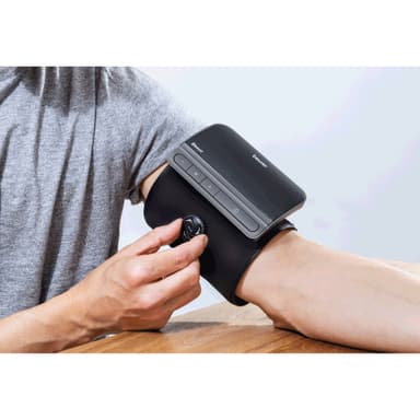 Visar systoliskt och diastoliskt tryck samt puls. Blodtrycksmätaren har en innovativ easyLock manschett för omkrets 24-40 cm. Om manschetten inte sitter rätt så kommer blodtrycksmätaren att indikera tills rätt position intas.