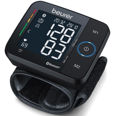 Upptäcker arytmi: Varnar vid eventuell oregelbunden hjärtrytm. Manschett för handled med omkrets 13,5-21,5 cm. Visar datum/tid. Automatisk avstängning. Signal vid felmeddelande. Batteriindikator.