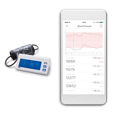 Smart Blodtrycksmätare Överarm Kan användas med appen FitVigo. Synkar bla till Apple hälsaFärg: vit För 2 användare Användarminne för 60 x 2 mätningar Batterier ingår: 4 x 1,5 V AAA Mäter: Puls och BlodtryckLäs mer om produkten
