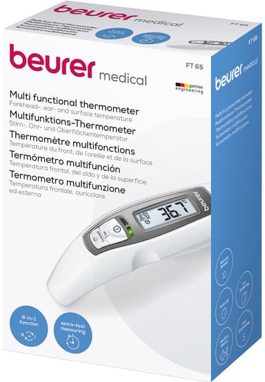Snabb och exakt mätning av öron-, pann- och yttemperaturer, möjlighet att lagra 10 mätningar med datum- och tidsinformation och en lättläst display med Beurer termometer FT 65 gör att du kan hålla ett öga på din hälsa.Läs mer om produkten