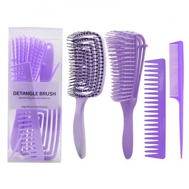 Borst- & Kamset , LilaEn perfekt uppsätning för dig som är ute efter sköna borstar och kammar. Dem är gjorda utav plast och hårdheten på borsten går att justera.Läs mer om produkten