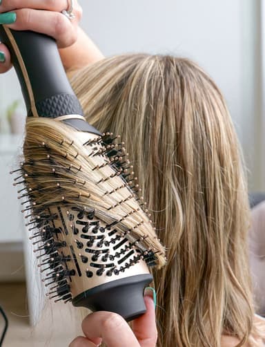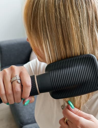 Volym och lyft: Den ovala borsten med borstspetsar skapar volym från rötterna för en fylligare look.