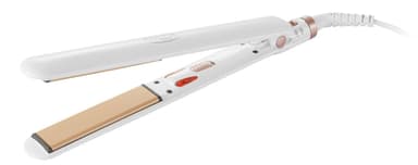 De keramiska flytande plattorna är 25x90mm och gör det möjligt att räta ut ännu bredare hårslingor genom att försiktigt trycka på dem utan onödig dragning. Den stora fördelen med plattången är att den värms upp snabbt och man kan börja arbeta med frisyren nästan omedelbart. Kontrollampan och på / av-brytaren finns på en lättillgänglig plats och hjälper till att övervaka enheten. Den långa 360° svängbara sladden och gångjärnslåset för enkel förvaring är ytterligare funktioner som värderas av kunderna. Praktiskt och ergonomiskt handtag gör att du kan hålla i enheten och förhindrar att den glider ur din hand.