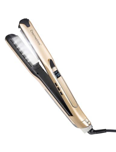 DEMELISS TITANIUM V2.0 - är en banbrytande plattång som kombinerar effektivitet och stil. Den inbyggda vattentanken på 30 ml och ångfunktionen gör att den plattar håret snabbt och skonsamt, samtidigt som den skyddar hårfibrerna från skador.