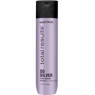 För blont, vitt eller grått hår. Matrix Total Results Color Obsessed So Silver Shampoo rengör skonsamt håret samtidigt som det eliminerar gula, glanslösa toner och ger håret ett naturligt utseende.Läs mer om produkten