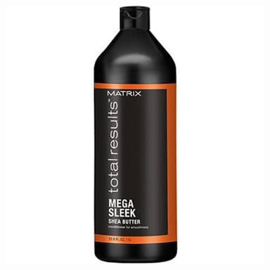Matrix Total Results Mega Sleek Conditioner 1000ml - ett balsam för frissigt och skadat hår, som återfuktar på djupet och slätar ut håret. Balsamet skyddar mot fuktighet i luften under hela dagen, motverkar frissighet och ger en vacker glans. Det reder ut håret och gör det lätthanterligt och mjukt. Dessutom reparerar det skadat hår och slitna toppar, vilket ger ett friskt och hälsosamt hår. Matrix Total Results Mega Sleek-seriens professionella hårvårdsprodukter innehåller 24HR Smooth Repair™-teknologi med stärkande ceramider och sheasmör, som motverkar frissigt, skadat och slitet hår med kluvna hårtoppar. Resultatet blir ett totalt reparerat, utslätat och glansigt hår i hela 24 timmar (vid användning av Mega Sleek Shampoo och Conditioner).