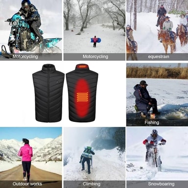 Värmeväst med två värmezoner i rygg och nacke och 3 olika temperaturlägen (35° C, 45° C, 55° C). En uppvärmd väst är perfekt för utomhusaktiviteter under kalla dagar.