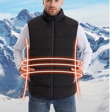 Värmer överkroppen: En uppvärmd väst som är mjuk och andas och som värmer kroppen, midjan, magen och nacken extra mycket när det är kallt. Perfekt för utomhusaktiviteter som camping, jakt, fiske, skidåkning, vandring eller sittande på läktaren under den kalla årstiden. Kan användas som ytterplagg eller som ett skönt varmt underplagg.