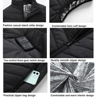 Värmer överkroppen: En uppvärmd väst som är mjuk och andas och som värmer kropp, midja, mage och nacke extra mycket när det är kallt. Perfekt för utomhusaktiviteter som camping, jakt, fiske, skidåkning, vandring eller när du sitter på läktaren under den kalla årstiden. Kan användas som ytterplagg eller som ett bekvämt varmt underställ.