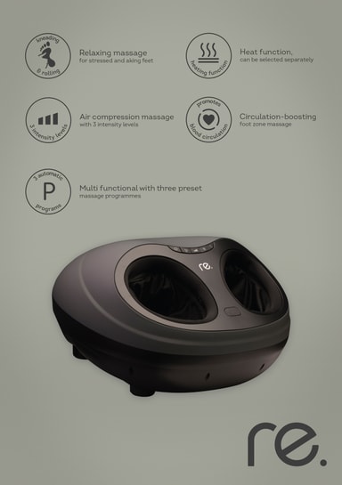 re. fotmassage ger dina fötter en skön avkoppling efter en lång dag. Denna massagapparat kommer med tre förinställda program och 3 effektlägen.Läs mer om produkten