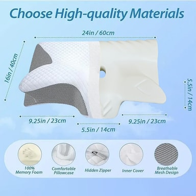 Ergonomisk fjärilsform: Den unika fjärilsformen på denna kudde tillför utmärkt stöd för ditt huvud, nacke och axlar, detta främjar korrekt ryggradsinriktning och minskar nacksmärta. Dess ergonomiska design hjälper till att lindra tryckpunkter och säkerställer en bekväm sovupplevelse.