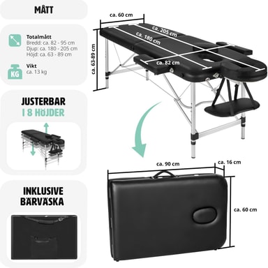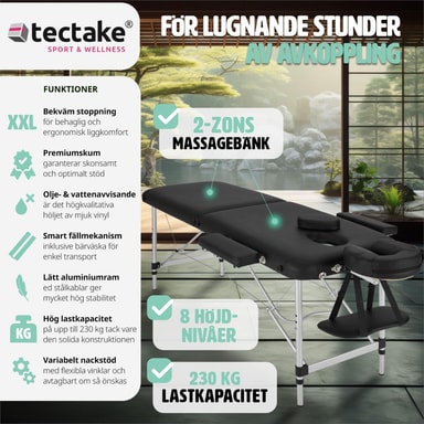 Massagebänk med 2 zoner, höjd-justerbar och hopfällbar