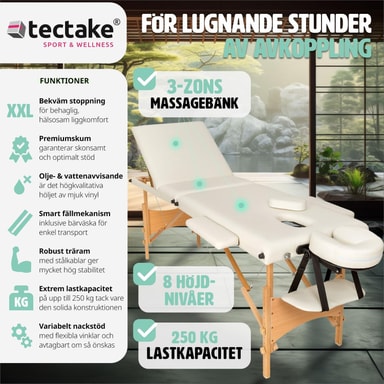 Upplev överlägsen avkoppling med denna massagebänk från tectake. Den fälls upp på några sekunder och är lika enkel att transportera som den är bekväm att använda. Skapa din egen avslappningszon – var som helst, när som helst. Ge eller få den perfekta massagen med vår praktiska och stilfulla massagebänk. Det ultimata valet för ditt välbefinnande.