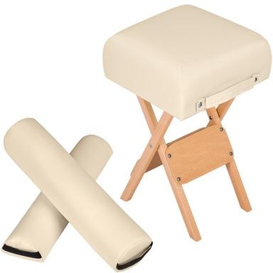 Originaltillbehör från tectake i vitt, som passar till våra massagbänkar. Innehållet består av pall, en hel och en halv massagerulle vilka förbättrar massageupplevelsen markant.