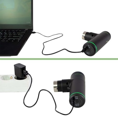 Superpraktisk minimassagepistol från Tunturi , redo att ta i din väska och ta med dig runt. Massagepistolen väger bara 460 gram. Massagepistolen har sex hastigheter. LED -belysningen visar vilken hastighet som är aktiverad. Med sin maximala ljudnivå på 50 decibel är massageapparatet särskilt tyst och det ger också extra avkoppling. De fyra medföljande huvudstyckena gör massagepistolen lämplig för hela kroppen. Massagepistolen har en batteritid på 2-3 timmar per. laddning. Laddning kan enkelt göras med USB-C via din dator eller laddningsdongel.