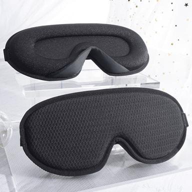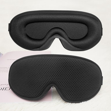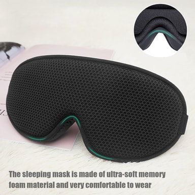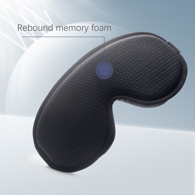 Sovmasken är gjord av ultramjukt minnesskum och mycket bekväm att bära. Ögonmasken blockerar effektivt ljus och är utformad så att den inte trycker mot ögonen. Du kan fortfarande blinka som vanligt. Sovmasken gör det lättare att slappna av och somna även i en miljö med störande ljus eller buller.