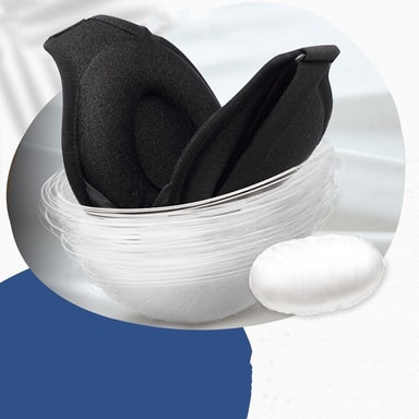 Denna sovmask är tillverkad av sidenlent elastan och fylld med formbart minnesskum som anpassar sig efter din ansiktsform för optimal komfort. Den blockerar ljus effektivt utan att trycka mot ögonlocken. Den smarta 3D-designen ger extra utrymme för ögonen, så att du kan blinka fritt utan obehag.
