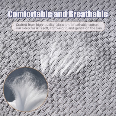 Bekväm och andas: Sovmasken är tillverkad av högkvalitativt tyg och ventilerande bomull, den känns mjuk, lätt och behaglig mot huden. De andningsbara materialen främjar luftflödet och förhindrar överhettning, vilket säkerställer maximal komfort under hela natten.