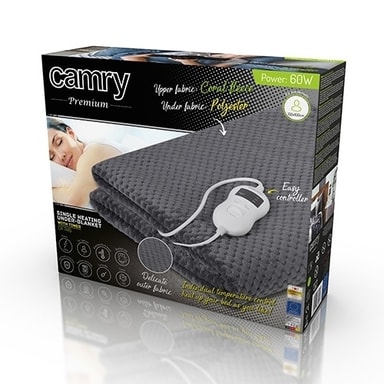 Det elektriska filten Camry CR 7416 ger dig avkopplande värme och komfort. Värmen hjälper dina muskler att slappna av och kan förbättra blodcirkulationen. Filten ger dig snabb och jämn värmefördelning på bara några minuter och låter dig vila med glädje. Filten kan användas som en bäddvärmare för att värma upp sängen innan du lägger dig. Camry CR 7416 är tillverkat av mjukt polärt tyg som du enkelt kan tvätta efter att du har tagit bort temperaturkontrollen och nätkabeln.