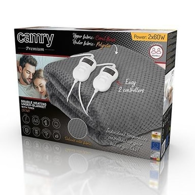 Det elektriska filten från Camry ger dig avkopplande värme och komfort. Den elektriska filten hjälper dina muskler att slappna av och kan förbättra blodcirkulationen. Filten ger dig snabb och jämn värmefördelning och låter dig vila med glädje i en varm säng på bara några minuter efter att du har slagit på det elektriska filten. Filten är tillverkat av mjukt polärt tyg. Du kan enkelt tvätta den efter att du har tagit bort temperaturkontrollen och en nätkabeln. Temperaturkontrollen låter dig välja temperaturnivån. Värmefilten är klassad på 60W och låter dig välja mellan 8 temperaturnivåer. Den är också utrustad med en timer som gör det möjligt att ställa in uppvärmningsperioden från 1 till 10 timmar.