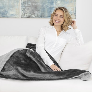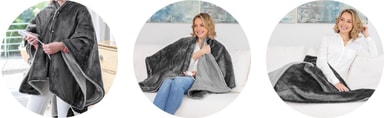 Övriga egenskaper: Det speciella med den 3-i-1 uppvärmda filten HB 677 är dess flexibla, multifunktionella applikation som kast, poncho eller klassisk värmefilt. Den bekväma storleken på 160x130 cm samt det behagligt mjuka fleecematerialet ger komfort och värme. Tre valbara temperaturnivåer, ett integrerat säkerhetssystem med överhettningsskydd och automatisk avstängning efter 180 minuter garanterar en avkopplande paus