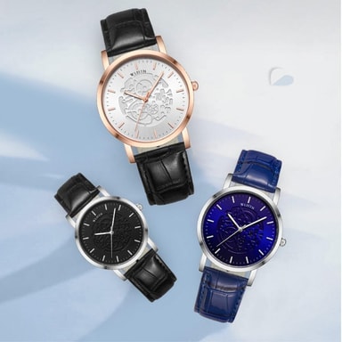 WLISTH S534 Modepar Analog Quartz Watch Läderarmband Luminous Armbandsur - Silver Boett / Svart Urtavla / Svart Armband / Herr