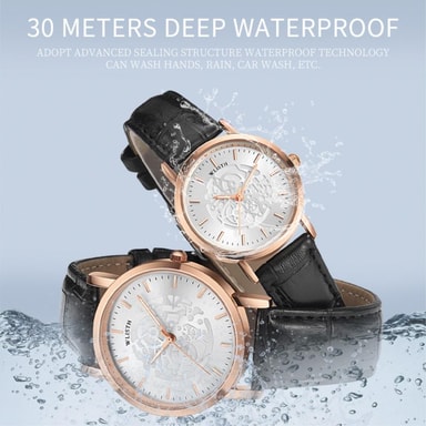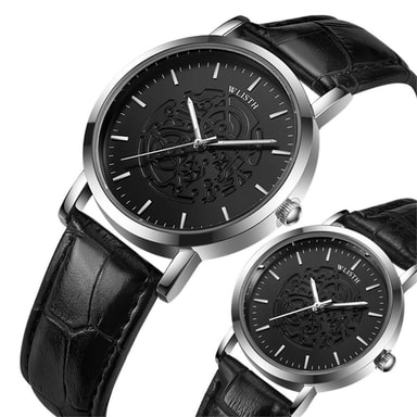 WLISTH S534 Modepar Analog Quartz Watch Läderrem Luminous Armbandsur - Silver Boett / Svart Urtavla / Svart Armband / Damer