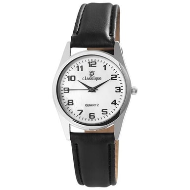 Classique herrklocka med armband i konstläder - Svart band / Vitt UrLäs mer om produkten