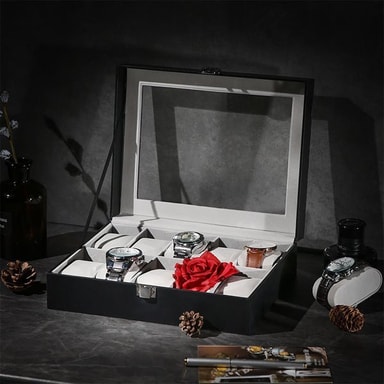 Klocklåda för 10 klockor - med glaslock och mjukt sammetfoderLäs mer om produkten