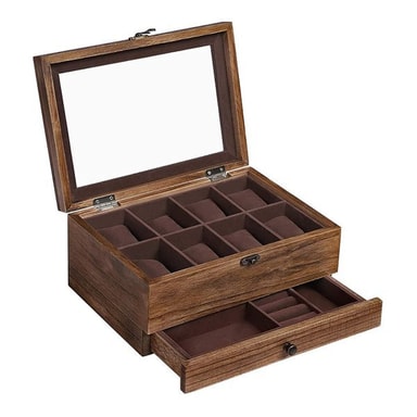 Klocklåda för 8 klockor och med glaslock - Brun/Trä