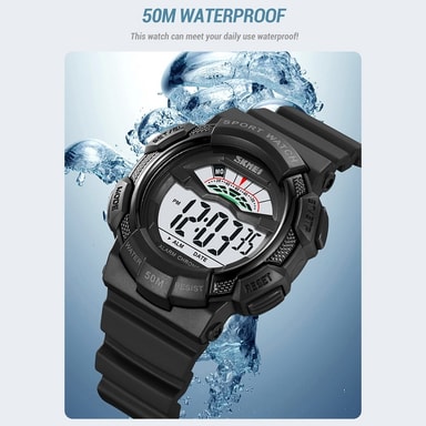 SKMEI 2153 50m vattentät armbandsur TPU-rem EL Bakgrundsbelysning elektronisk klocka - svart+blå/vit urtavla