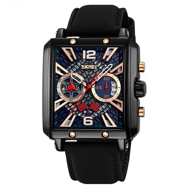 SKMEI 9340 Snygg läderrem för män fyrkantig kalenderkvartsklocka - svart band / blå urtavla