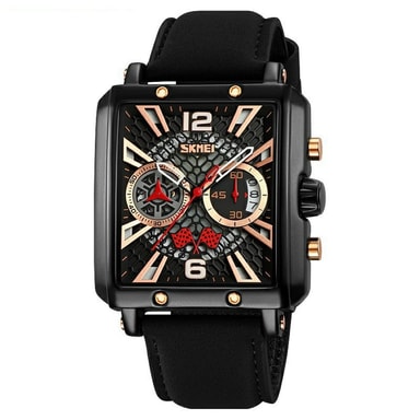 SKMEI 9340 Snygg läderrem för män fyrkantig kalenderkvartsklocka - svart band / svart urtavla