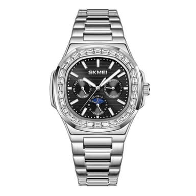SKMEI 7076 Business Men Quartz Watch Octagonal Zircon Decor Fashion Armbandsur - Silver Armband / Svart Urtavla