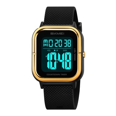 SKMEI 2316 50m Vattentät Digital Klocka Fyrkantig Elektronisk Armbandsur med EL-bakgrundsbelysning och Stoppur - Guld+Svart / TPU-armband
