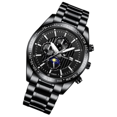 Vattentålig armbandsklocka - Svart armband med svart bakgrund och svart ramLäs mer om produkten