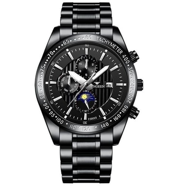 Vattentålig armbandsklocka - Svart armband med svart bakgrund och svart ram