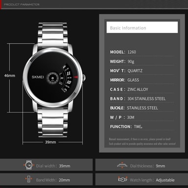 SKMEI 1260 Herrklocka Vattentät Casual Quartz Sport Watch - Silver