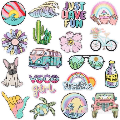 Detta set innehåller 18 vackert designade lappar tillsammans med ett kraftfullt självhäftande ark, som ger dig flera sätt att tillföra kreativitet till dina kläder och accessoarer.