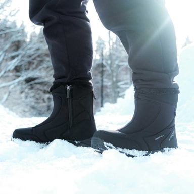 Trekker dubbskor i svart färg, storlekar 36-46, med högt skaft, vattenavvisande yta och 15 ståldubbar för att ge stabilitet och säkerhet på hala vintervägar och promenader.Läs mer om produkten