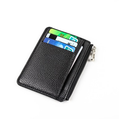 Slimmad plånbok med dragkedja och korthållare. Tillverkad av högkvalitativt miljövänligt PU-läder och med 6 kortplatser, 2 dolda fack och 1 större fack för t ex mynt.