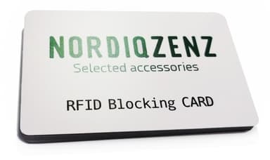 Detta RFID-blocker kort är försett med ett tunt lager av aluminium som blockerar mot skimning av kort som placeras tillsammans med blocket-kortet. Kortet ser ut och är i samma storlek som ett vanligt kontokort.
