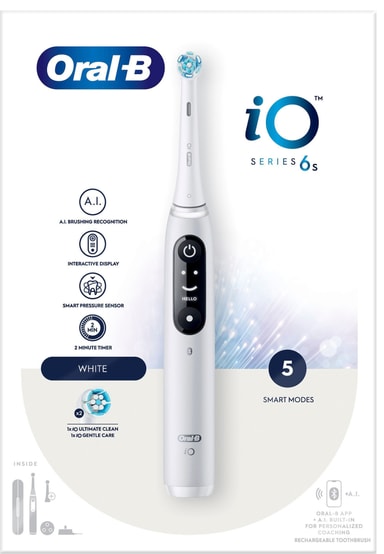 Oral-B iO 6s eltandborste 427407 ger din tänder den professionella vård som de förtjänar. Då den är utrustad med innovativ iO-teknologi, intuitiv skärm, 5 borstlägen och mer är denna tandborste perfekt för dig.Läs mer om produkten