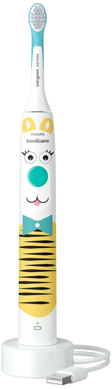 Med en Philips Sonicare eltandborste för barn HX3601/01 kan du hjälpa dina barn att bygga hälsosamma munhälsovanor. Eltandborsten har en rolig och interaktiv design samt en Sonic-teknologi, SmarTimer och KidPacer som säkerställer en ordentlig borstning.Läs mer om produkten