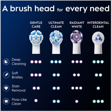 Håll känsligt tandkött glatt med Oral-B iO Gentle Care tandborsthuvud 373739. Det har mjuka borst och en dämpande ring för en grundlig men skonsam rengöring. Dessutom påminner de färgskiftande borsten dig när det är dags för ett nytt borsthuvud.Läs mer om produkten