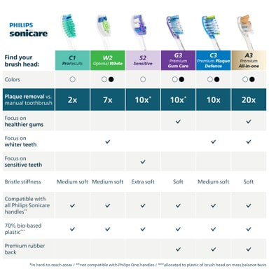 Uppgradera din munvård med Philips Sonicare G3 premium tandborsthuvud HX9054/88. Dess konkava sidoborst avlägsnar upp till 10 gånger mer plack, vilket ger en djup och skonsam rengöring för friskare tandkött och vitare tänder.Läs mer om produkten
