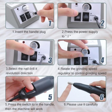 Inklusive slipnålar och slipringar: Slipmaskinen kommer med en mängd tillbehör för att du ska kunna skapa och forma vackra naglar. I setet ingår totalt 12 st olika tillbehör för att fila och slipa samt lossa gel-/akrylnaglar.