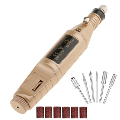 Inklusive tillbehör: Smidig liten elektrisk nagelfil som kommer inklusive 6 bitsar och 6 sandpapper. Särskilt lämpligt för akryl-nagelkonst, men även utmärkt för annan manikyr och pedikyr.