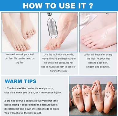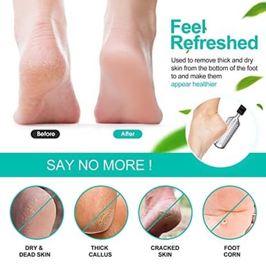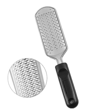 Fotfilen är gjord av högkvalitativt rostfritt stål och har ett halkfritt ergonomiskt handtag. Fotfilen tar enkelt bort död hud och envisa förhårdnader. Motverkar sprickor och hård hud under fötterna och låter dina fötter bli mjuka, lena och vackra igen. Ett oumbärligt pedikyrredskap för bästa fotvård hemma.