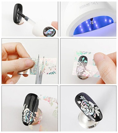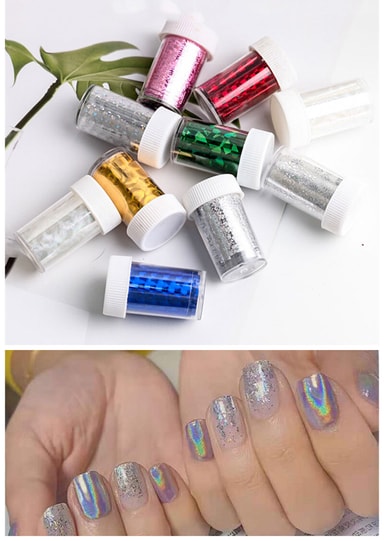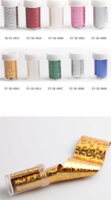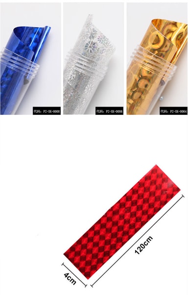 Nagelfolie på rulle i många olika färger och mönster, perfekt för att skapa vacker nagelkonst. Enkel och säker att använda och lätt att ta bort.
